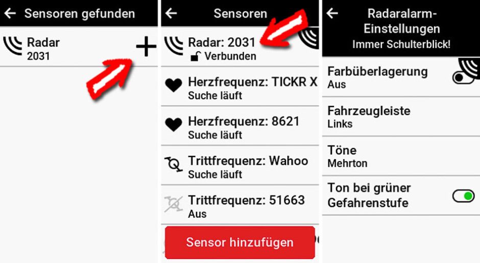 Nach dem ersten einschalten war der Reco 80 bei mir direkt im Koppelmodus. Im Radcomputer nach Sensoren suchen, Radar auswählen und fertig.